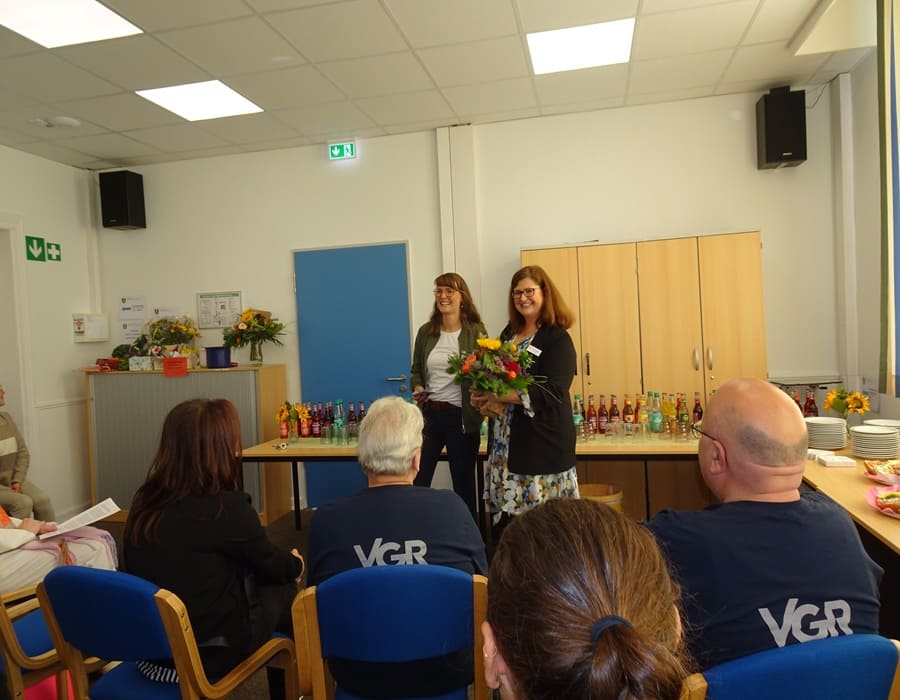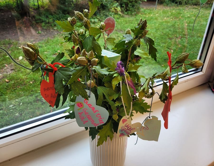 Die Kl. 4b hatte mit Frau Friedrich ein Abschiedslied einstudiert. Zum Abschluss überreichten die Erstklässler ihren Paten aus den vierten Klassen Abschiedsgeschenke.