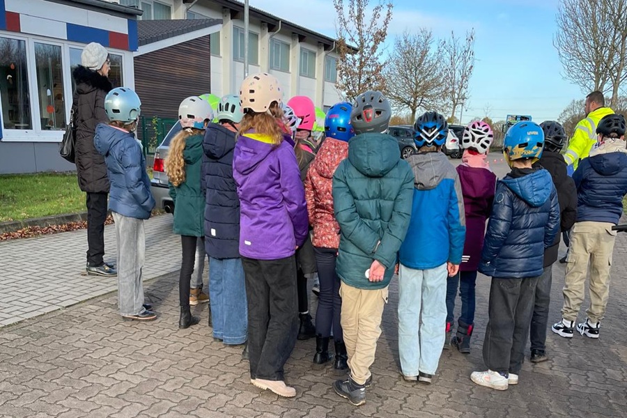 Aufgeregt trafen alle SchülerInnen der Klassen 4a und 4b am Montag, den 17.11. mit ihrem Fahrrad in der Schule ein. In den Wochen vorher hatten sie im Rahmen des Sachunterrichts schon ganz fleißig alles rund um das Thema Verkehr gelernt. Zudem kam unser Verkehrspolizist Herr Hosse eine Woche vorher schon einmal in unsere Schule, um alle Fahrräder und Helme auf Verkehrssicherheit zu überprüfen und mit den Kindern Praxisübungen hinter der Schule zu machen. Der Theorietest wurde dann im Sachunterricht geschrieben. Am Montag wurde vor allem das Linksabbiegen noch einmal geübt, da dies großes Unfallpotenzial birgt. Alle Schüler haben sich toll geschlagen und der Großteil bekam von Herrn Hosse den Fahrradführerschein ausgehändigt. Das habt ihr toll gemacht!