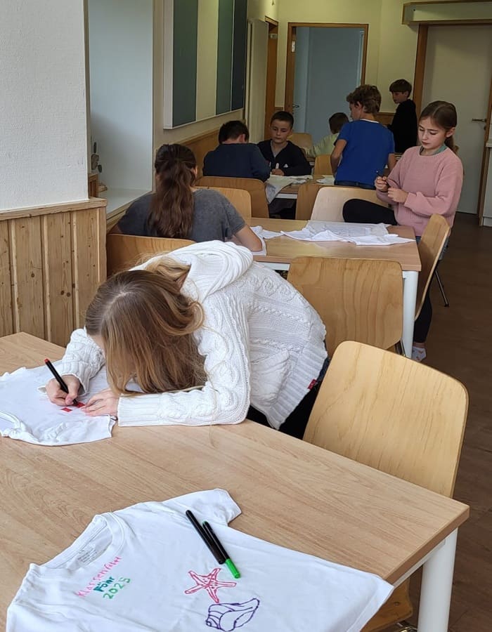 Donnerstag stand direkt nach dem Frühstück eine Wattwanderung auf dem Programm, natürlich mit professionellem Führer. Die Kinder, die barfuß liefen, hatten ganz schön kalte Füße, da das Wasser schon empfindlich kalt war. Zum Mittag gab es Pizza und Salat. Einige Jungen sprangen am Nachmittag auf dem Hüpfkissen. Danach wurden von allen Kindern T-Shirts bemalt. Am letzten Abend durfte man auswählen, ob man lieber "Vaiana" schauen wollte oder eine Disco veranstaltete. Dort durften sich alle Kinder Songs wünschen und beim Battle Mädchen gegen Jungen hatten alle eine Menge Spaß.