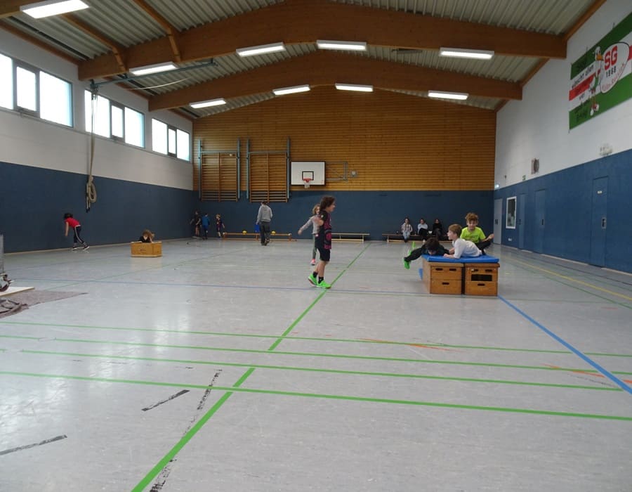 In der Turnhalle waren 5 Stationen aufgebaut, an denen sechs grundlegende Bewegungsfähigkeiten getestet wurden. Im Bereich des Sich-Bewegens ging es ums Balancieren, Rollen, Springen und Laufen. Dazu gab es das Etwas-Bewegen mit Werfen, Fangen, Prellen und Dribbeln. In drei Gruppen, geleitet von Herrn Oltmanns, Gesa sowie den jeweiligen Klassenöehrkräften Frau Sähn und Frau Stich gaben alle ihr Bestes und hatten viel Spaß dabei.